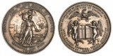 CRYSTAL PALACE INTERNATIONAL EXHIBITION, 1881, in silver (63mm) (BHM 3107), by Pinches and A Fisch, obverse, a muse holding a caduceus and key opening the ...
