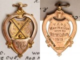 FOOTBALL FOB MEDALS IN SILVER WITH 9 CARAT GOLD NAME PLATES, to F.J. Walls, 1907 & 8, 'Trowbridge District/Wednesday Football League' by W.J.D.; 1909.10 Croneer ...