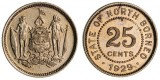 BRITISH NORTH BORNEO, George V, silver 25 cents, 1929 H (KM.6). Extremely fine.
