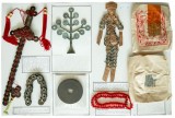 CHINA, odd and curious money, traditional cast sword (late Ching, 'new cash for the rich'); talisman string of cash (over 100 pieces) and smaller one ...