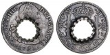 DOMINICA, British Administration, contemporary forged cut countermakred of the silver 11 bits, emergency issue, 1798 authorisation, fifteen crenated punch hole on Charles IIII eight reales, ...