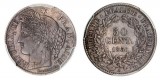 FRANCE, Republic and Empire, mostly base metal, 1777 - 1992, includes silver five francs 1860 BB, silver ten francs 1963, 1967 - 1972, fifty francs ...