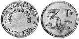 CAPE TOWN, Union Steamship Co. Ltd 6d and 3d (2) in cupro-nickel (T.C11, M.-) undated but circa 1873. Good fine - very fine and rare ...