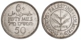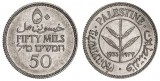PALESTINE, British Mandate, silver fifty mils, 1934. Extremely fine.