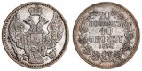 POLAND, Congress Kingdom, Nicholas I, 20 kopeks or 40 groszy, 1850 (KM.C.130, Kop 9483). Nearly extremely fine.