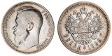 RUSSIA, Empire, Nicholas II, silver rouble, 1899 (KM.Y.59.3); silver 50 kopeks, 1899, 1913 (KM.Y.58.2). Nearly very fine; good; very fine. (2)
