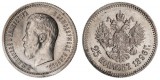 RUSSIA, Empire, Nicholas II, silver 25 kopeks, 1896. Friction wear to high points on bust, good extremely fine.
