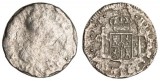 SPAIN, Charles III, silver eight reales, 1784, uncertain mint and moneyer, sea salvage from the wreck of the East Indiaman Hartwell. Salt water corrosion particularly ...