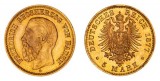GERMANY, Baden, Frederick, five mark, 1877G (KM.266). Nearly uncirculated.