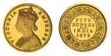 INDIA, British, Queen Victoria, proof five rupees, 1879, bust c (KM.493.3). FDC and very rare.