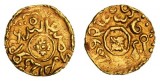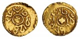 INDONESIAN STATES, Sumatra, Srivijaya Kingdom, (600-1200 AD), gold 1/4 massa, (0.61g), obv. four spoked wheel, rev. chakra disc. Very fine for type.
