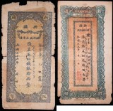 CHINA, Sinkiang Provisional Government, Finance Department Treasury, 1930 issue, 400 cash (P.S1845); 1933 issue, 10 taels (P.S1875). Edge losses, quarter folds, very good - fine. ...