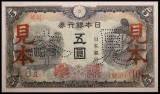 JAPAN, Bank of Japan, specimen five yen (1944) red 'Mi-hon) overprint and perforated, serial block 101 (P.55s1). Nearly uncirculated.