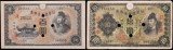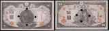 JAPAN, Bank of Japan, 1945 issue, specimen 10 and 100 yen, four punch hole cancels small red overprint; block Nos. 31 and 54 respectively (P.77s2, ...