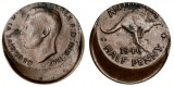 GEORGE VI, pennies, 1944Y and 1952, both struck off centre by 15 and 10 percent, out of collar, high lip rim on second. Good very ...
