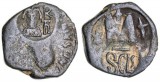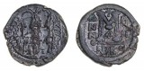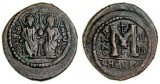 JUSTIN II, with Sophia, (A.D. 565-578), bronze nummus, Nicomedia mint, obv. Justin and Sophia enthroned facing, nimbate and crowned, rev. larrge M, cross above and ...