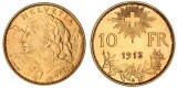 SWITZERLAND, ten francs, 1913B (KM.36). Nearly extremely fine.