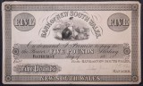 BANK OF NEW SOUTH WALES, black and white printers' proof one pound Sydney 18, pencilled '20th Feb 1863 to this 2nd plate' (MVR 7c). Right ...