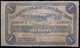 THE AUSTRALIA JOINT STOCK BANK, one pound, Sydney 1st January 1907 A641151A (MVR 4a). Pin holes otherwise nearly fine and rare.
