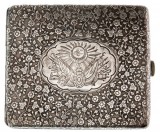 WWI WAR SOUVENIR, Lutz Weiss silver cigarette case with intricate floral pattern and in the centre of the lid is the Ottoman Arms, inside is ...