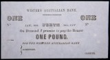WESTERN AUSTRALIAN BANK, one pound, Perth, Jan 1844, unissued remainder on watermarked paper (MVR.1); Facsimile of Western Australian Bank one pound note. First trimmed, perforation ...
