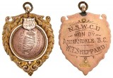 DUNLOP, Inter Club Premiership 1908, in gold (35x29mm) (11.11g) by W.Kerr, inscribed 'N.S.W.C.U./Won by/Annandale B.C./W.T. Sheppard'. Very fine.