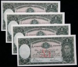 ONE POUND, Riddle/Sheehan (1933) N/25 739340/4 (R.28), a run of five consecutive notes. Slight toning on back of the last, nearly uncirculated - virtually uncirculated ...