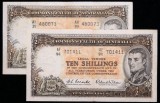TEN SHILLINGS, Coombs/Watt - Coombs/Wilson (1949 - 1952) A 64 118128, B 47 477816 (R.14, 15); one pound, Sheehan/Macfarlane - Coombs/Watt (1938 - 1949) O ...