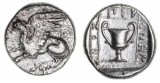 THRACE, Abdera, (386/5-375 B.C.), silver drachm or tetrobol (2.56 g), obv. griffin prancing to left, traces of ABD behind, rev. kantharos within outlined square, around ...