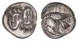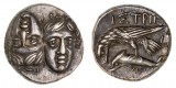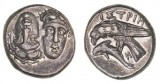THRACE (MOESIA INFERIOR), Istros, (400-350 B.C.), silver drachm (Sear stater), (5.70 g), obv. two young male heads facing, side by side, right upright, left inverted, ...