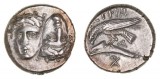 THRACE (MOESIA INFERIOR), Istros, (400-350 B.C.), silver obol, (0.49 g), obv. two young male heads facing, side by side, left upright, right inverted, rev. sea-eagle ...