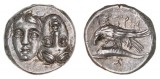 THRACE (MOESIA INFERIOR), Istros, (400-350 B.C.), silver stater, (5.40 g), obv. two young male heads facing, side by side, left inverted, right upright, rev. sea-eagle ...
