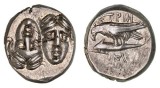 MOESIA, Istros, (c.280-56/5 BC), silver drachm (5.18g), obv. facing male heads, one inverted, rev. eagle standing on dolphin left, **ISTRIH* above, **DI* below (HGC 3.2 ...