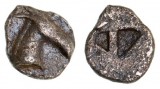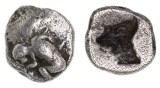THRACO-MACEDONIAN REGION, uncertain mint, (late 6th - early 5th century B.C.), silver hemiobol or tetartemorion(?), (6mm, 0.26 g), obv. head of goat right, incuse square, ...