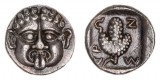 THRACE, Maroneia, (c.432-425/4 B.C.), silver obol, (10mm, 0.97 g, 12h), obv. Gorgoneion, rev. grape bunch on vine within incuse square, (S.-, Schonert-Geiss 354-5 var (unlisted ...