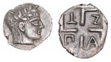 THRACO-MACEDONIAN REGION, uncertain mint, (c.500-450 B.C.), silver hemitartemorion, (5mm, 0.11 g), obv. head of ram left, rev. Kantharos(?) within incuse square, (S.-, cf.Tzamalis 49 [trihemitartemorion]). ...