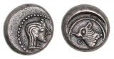 BLACK SEA REGION, Kolchis, (c.5th-4th century B.C.), base silver hemidrachm, (2.10 g), obv. female head to right of archaistic style within dotted border, rev. bull's ...