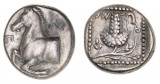 THRACE, Maroneia, (c.411/0-398/7 B.C.), silver tetradrachm, (12.02 g), obv. horse rearing to left, rev. **DE-OU-NU-S* vine leaf around a grape arbor of four bunches all ...