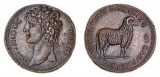 ROMAN PROVINCIAL MEDALLION, Ionia, Antinous, in bronze (38mm; 34.37g), Smyrna Mint, struck after October 130 A.D. under reign of Hadrian, obverse, head of Antinous left, ...