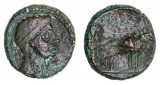 ASIA MINOR, Troas, Alexandria, Augustus, (27 BC - 14 AD), bronze semis (4.30g), obv. bare headed bust of Augustus right, AVG behind, rev. two colonists ...