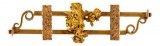 NUGGET BAR BROOCH, c1890, in gold (18ct; 6.50g; 52x15mm), by VEN (V.E.Nesbit), features a double bar with decoration and in the centre is fitted a ...