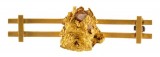 GOLD NUGGET BROOCH, in gold (18ct; tot wt 12.25g; 47.5x15mm), by Coney, features a double bar and in the centre is a gold nugget with ...