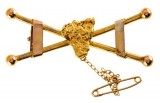 GOLD NUGGET BROOCH, in gold (tested as 15ct; 11.68g; 55x22mm), no maker, features crossed bars and in the centre is a genuine gold nugget, pin-back ...