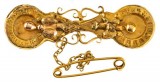 GOLDFIELD BROOCH, in gold (tested as 18ct; 6.26g; 48.5x14mm), no maker, described as early primitive brooch from goldfield, pin-back with safety chain, with unofficial box. ...