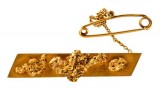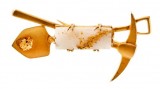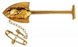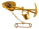GOLDFIELDS BROOCH, c1890, in gold (15ct; 6.79g; 45x13mm), by THR (details unknown), features a miner's shovel with a gold nugget on the blade, pin-back with ...