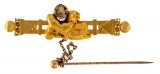 COOLGARDIE (GOLDFIELDS) BROOCH, c1899, in gold (18ct; 4.32g; 46x27mm), attributed to maker, Larard Bros, features a crossed pick axe and shovel with a gold nugget ...