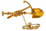 PICK AND SPADE BROOCH, in gold (18ct; 5.32g; 48x25mm), no maker, features crossed pick and spade with gold nugget on blade of spade, in the ...