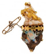 OPAL AND NUGGET BROOCH, c1890, in 15ct gold setting (tot wt 12.35g; 18x41mm), by Denis Br(os), pin-back with safety chain. Very fine.