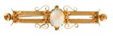 OPAL BAR BROOCH, in gold (15ct; tot wt 3.20g; 45x11.5mm), attributed to maker, Duggin, Shappere & Co, featuring a decorated double bar with a centrepiece ...