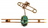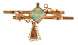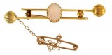 OPAL BROOCH, in gold (15ct; 4.10g; 50x8mm), maker unknown, features a bar with a small opal fitted into an engraved star shape in the middle, ...